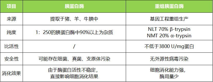 重組胰蛋白酶對比傳統(tǒng)動物源提取的胰蛋白酶,在活性、純度以及無動物源性等方面,優(yōu)勢明顯,更符合生物制藥行業(yè)發(fā)展趨勢。