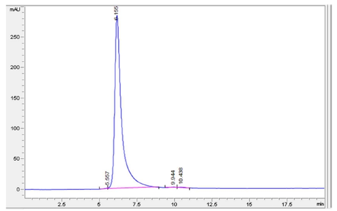 √ 重組人源化Ⅲ型膠原蛋白進(jìn)行檢測(cè),HPLC檢測(cè)蛋白純度>95%。